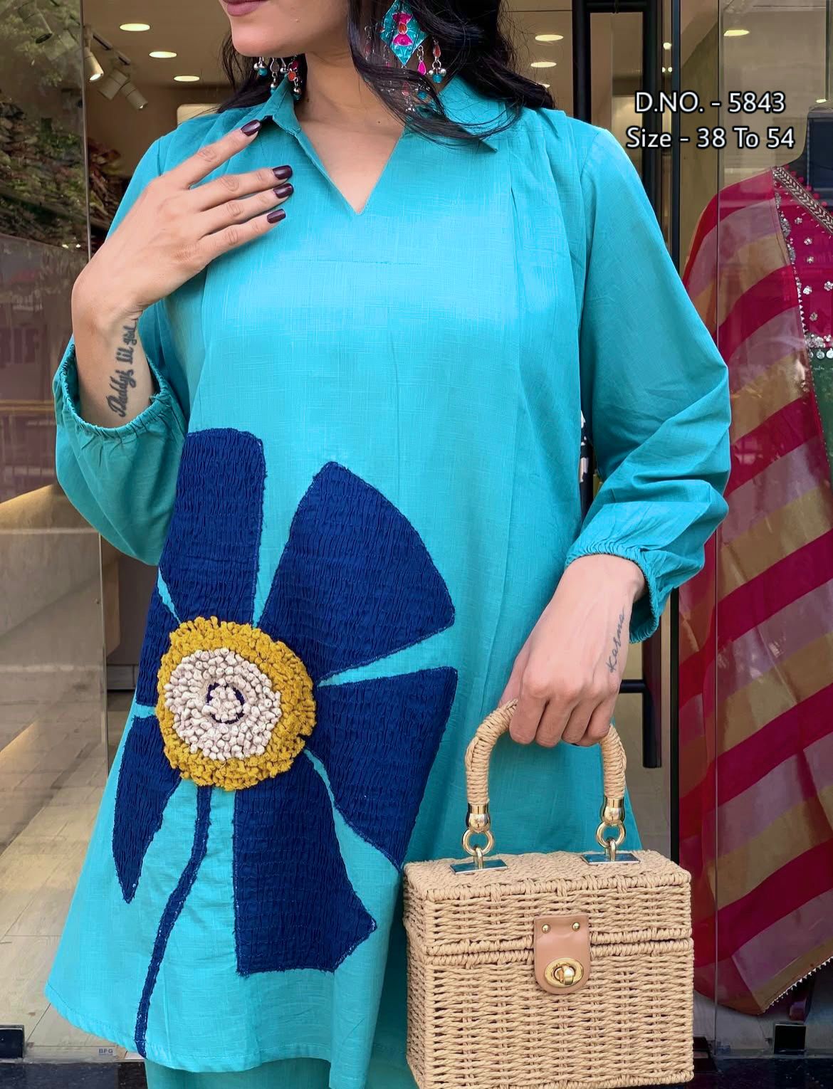Paired with a Heavy Cotton Slub / Cotton Flex Palazzo featuring both-side pockets, this outfit combines ease, durability, and premium craftsmanship. Suitable for daily wear, office wear, festive occasions, and casual outings.