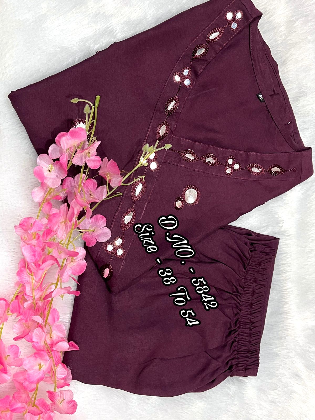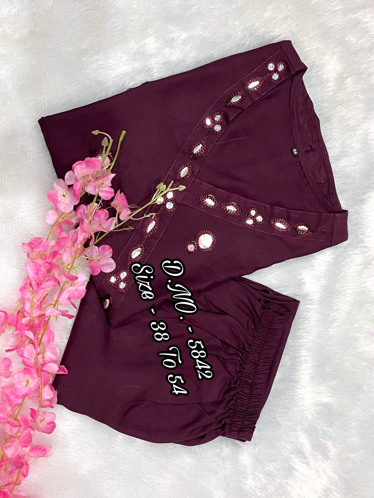 Rayon 14 Kg Premium Flared 50” Gown Kurti with Mirror Foil Aari Work + Rayon Pant